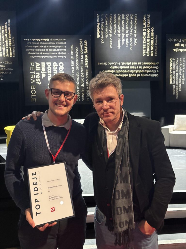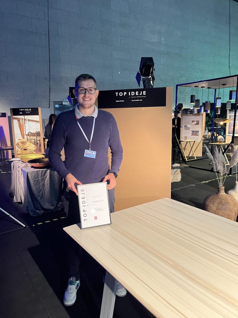 Among the awardees, Gašper Martinc stood out by receiving the TOP IDEA 2024 award for his unique dining table made from Kerrock in the new colour N 546. The jury, consisting of Janez Mesarič, Kaja Strle, and Dejan Kos, emphasized during the award ceremony: “The dining table combines the leading material Kerrock with an innovative metal support cross, creating a well-thought-out product for industrial production.”