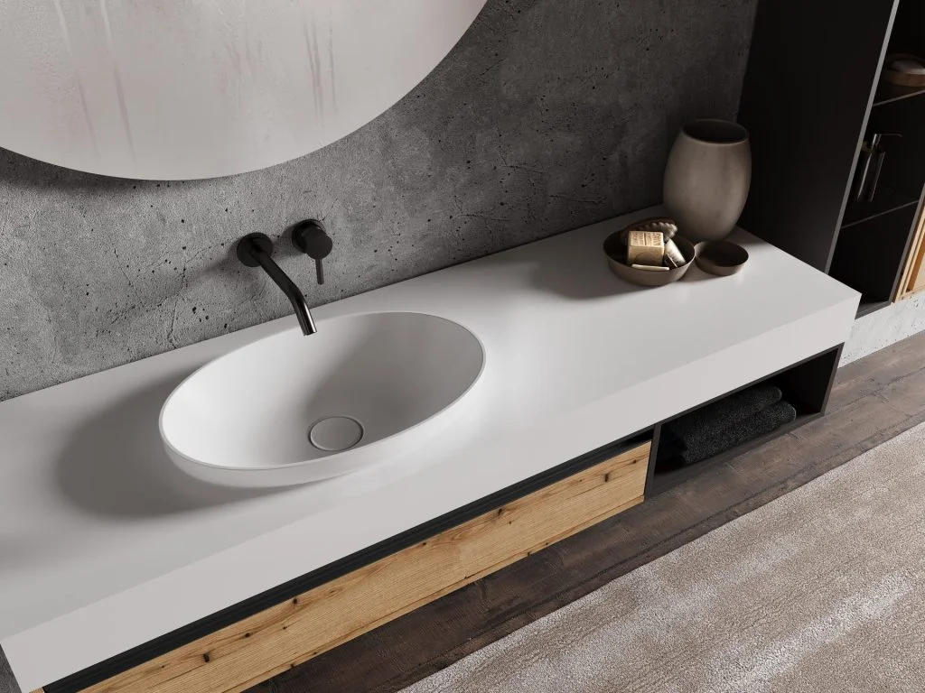 Whether you’re thinking of renovating your bathroom or planning a new one, Kerrock is the perfect choice, combining elegance, functionality and durability. This premium material allows you to add a modern and modern look to your bathroom, while enjoying easy maintenance and long-lasting quality.