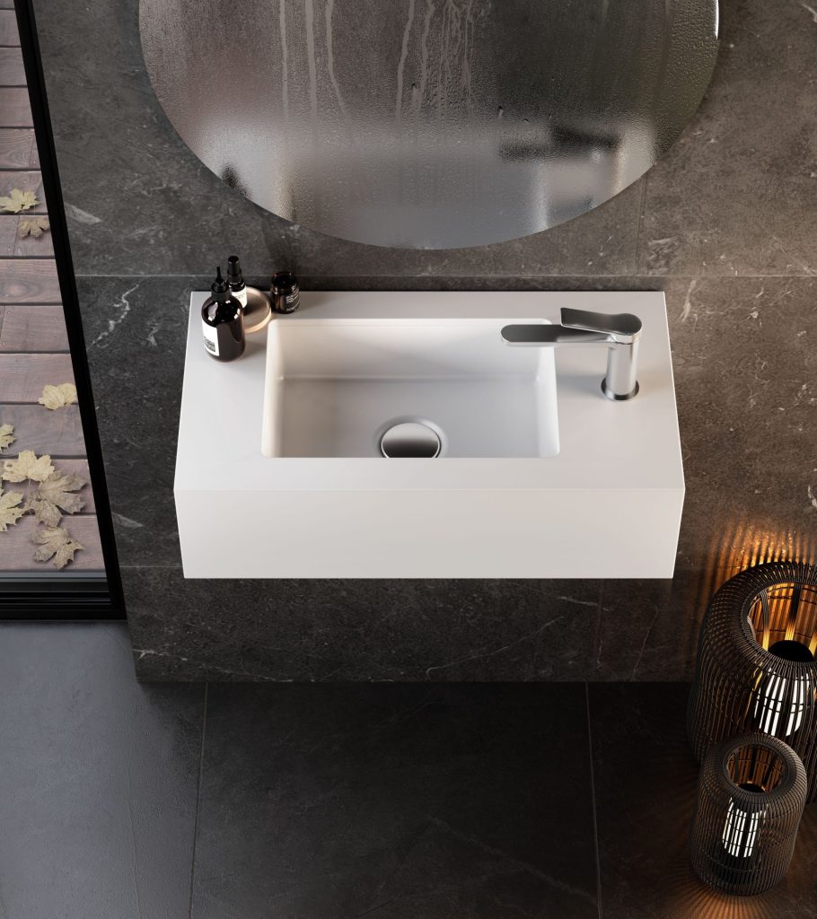 Sienna-E: A wall-mounted vanity top suitable for spaces where aesthetic simplicity is key. Flexible dimensions from 750 to 2900 mm.