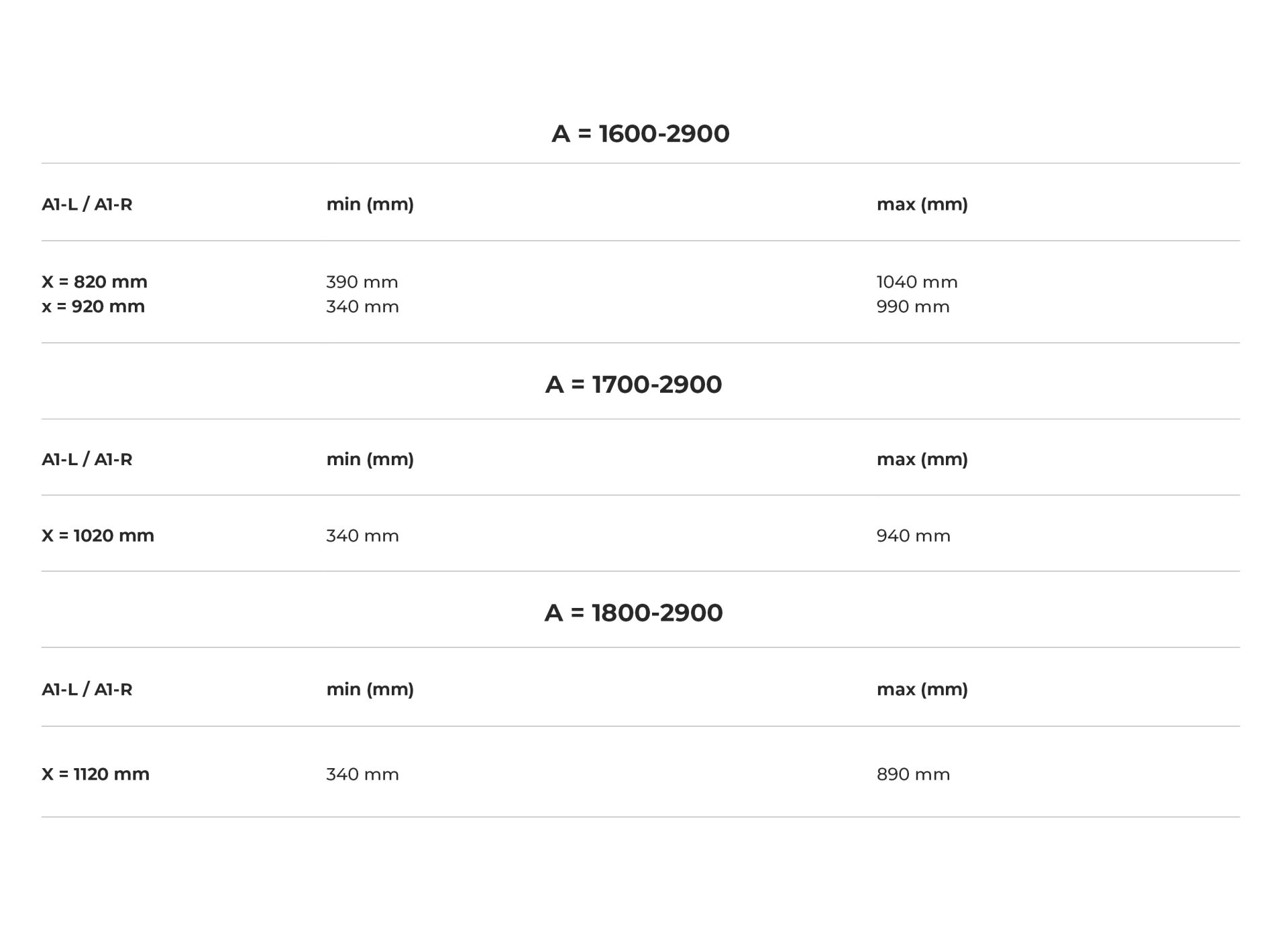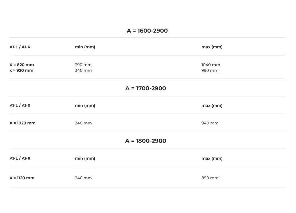 Sienna D: A double vanity top, ideal for larger spaces, with a range of 1600 to 2900 mm, offering more space for simultaneous use.