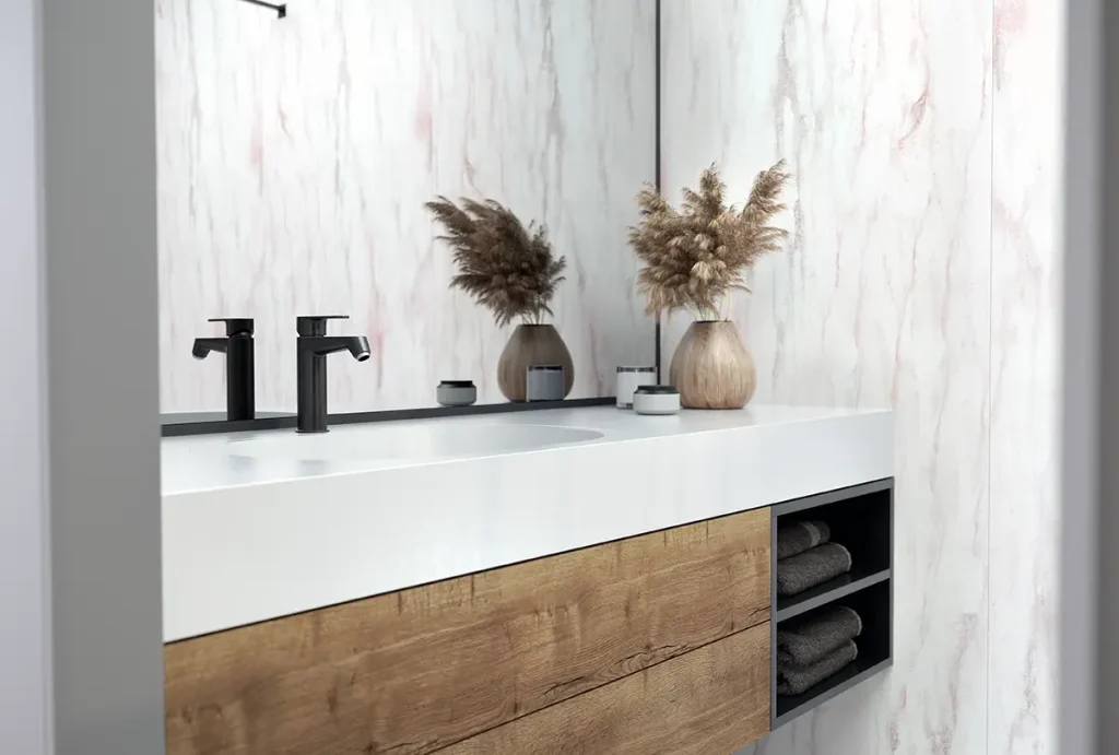 Pannelli standardizzati progettati specificamente per il rivestimento di interi bagni o cabine doccia di grandi dimensioni.