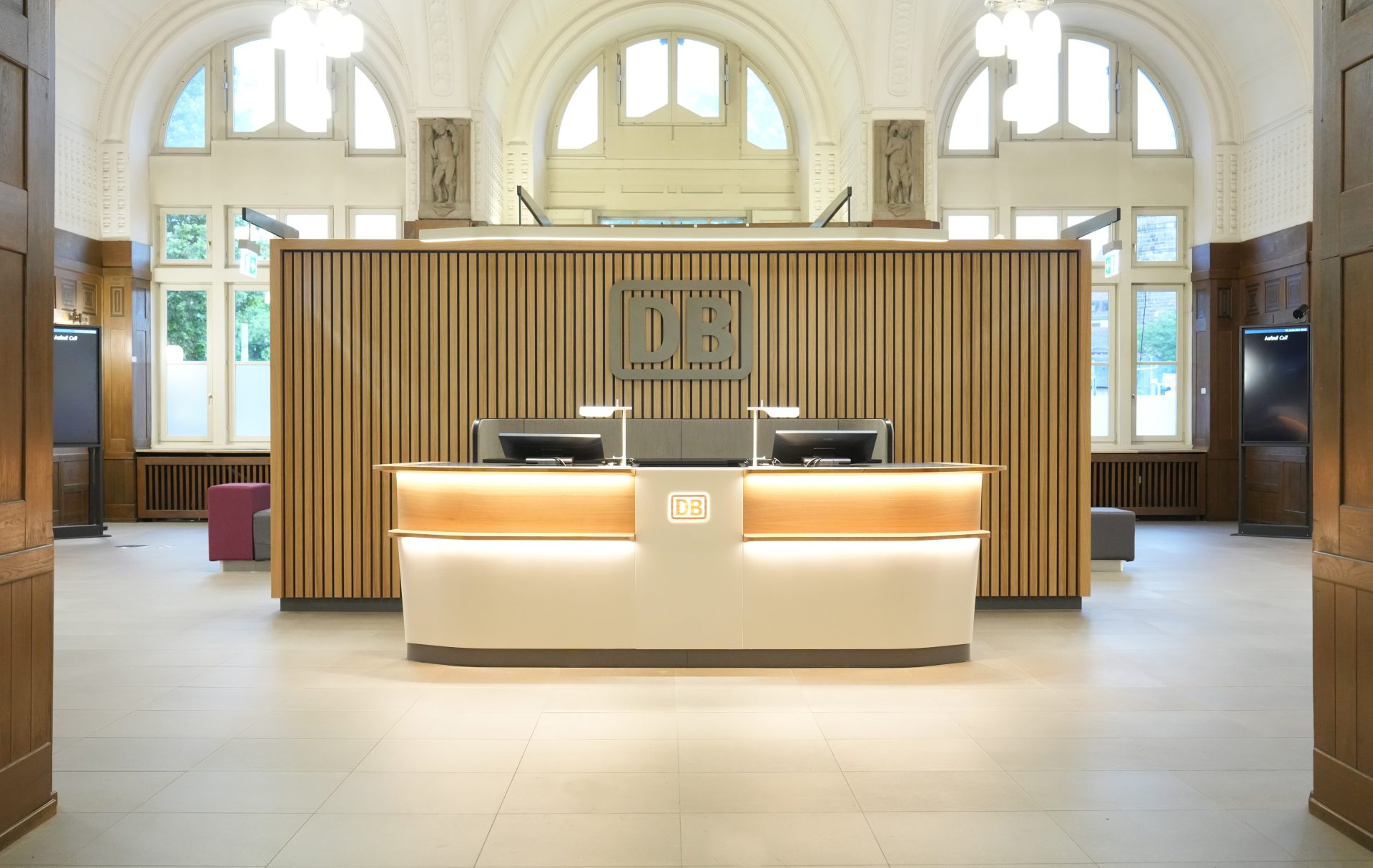 Nürnberg, 2024 — Following a renovation, Deutsche Bahn (DB) has unveiled its newly redesigned travel center at Nürnberg’s main train station. This modernized space emphasizes enhanced customer service and a more personalized experience for travelers, while carefully preserving the station’s iconic Jugendstil architecture. A key element of the redesign is the use of innovative materials like Kerrock, seamlessly blending functionality with a warm, inviting aesthetic.