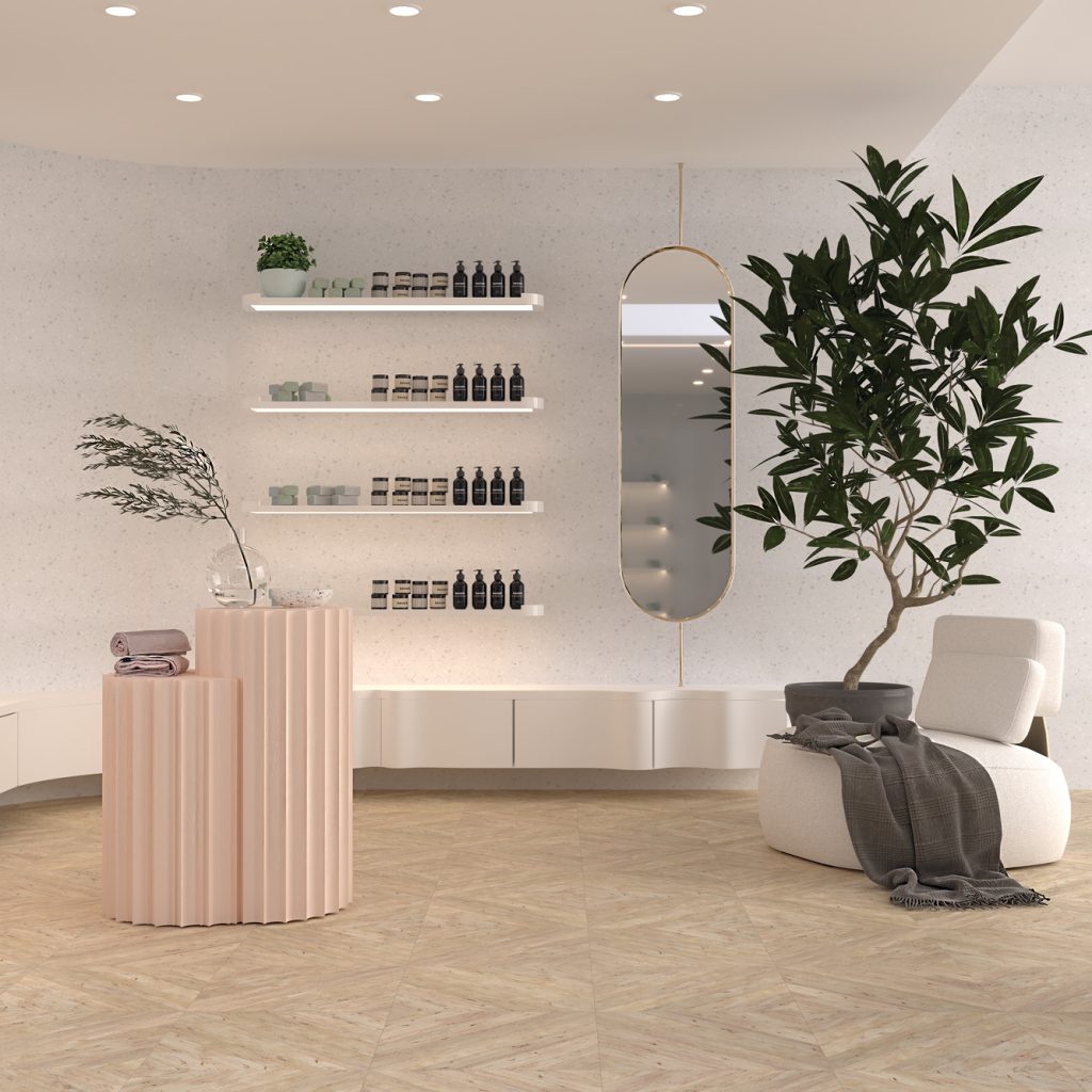 It is distinguished by exceptional resistance to mechanical stress, impacts, moisture, and stronger cleaning agents, which ensures a long service life and worry-free use. The surface of Kerrock is easy to clean and maintain, while also allowing for a high level of hygiene, making it ideal for healthcare facilities, hospitality venues, and wellness centers.