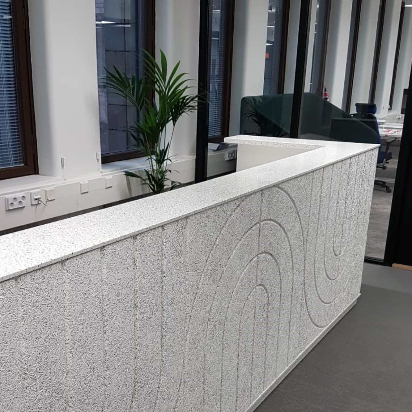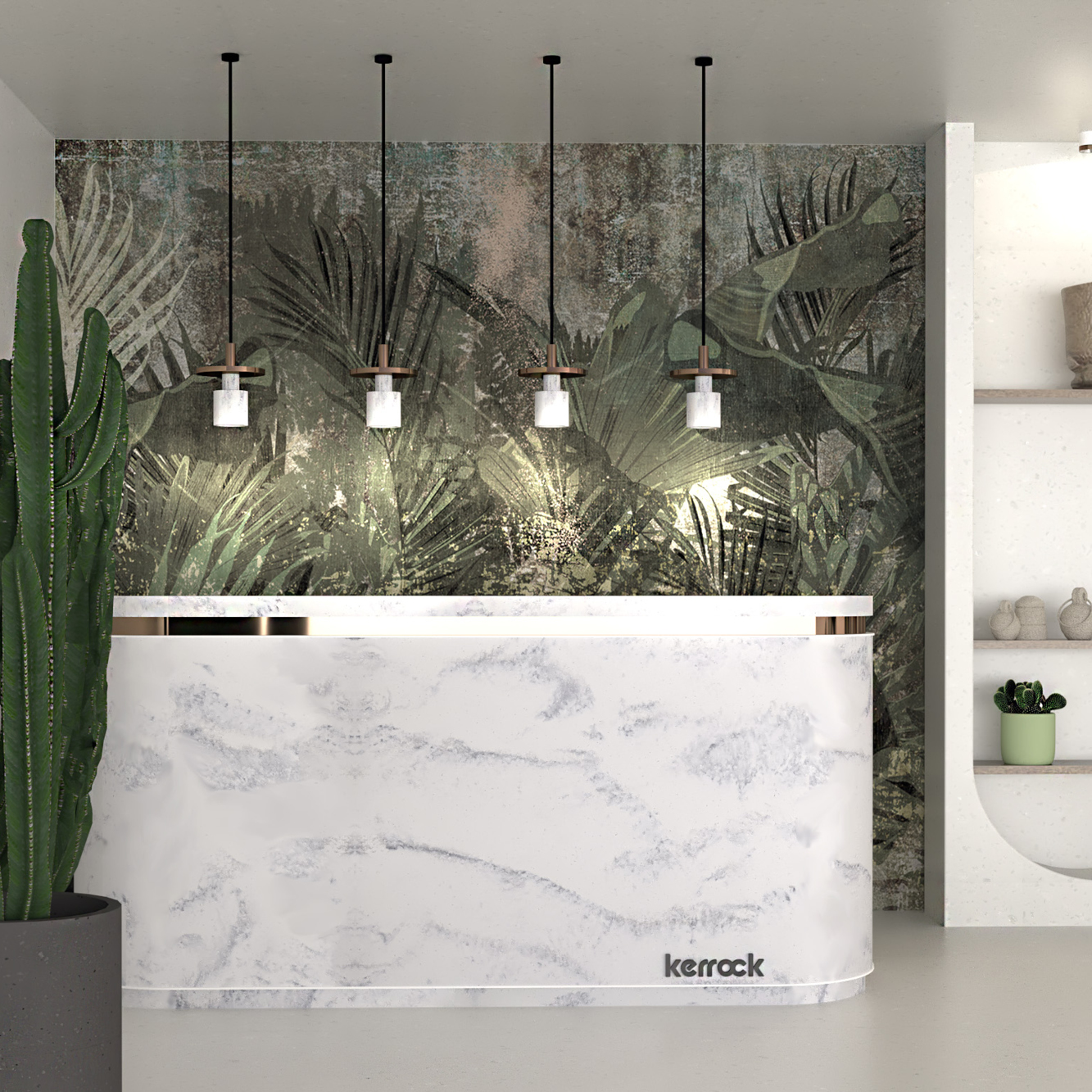 Kerrock is a material that enables companies to design spaces with a strong sense of aesthetics, refinement, and contemporary style. Its smooth, seamless surface creates an impression of prestige and order, while its design flexibility allows it to be fully adapted to the requirements of architects and interior designers.