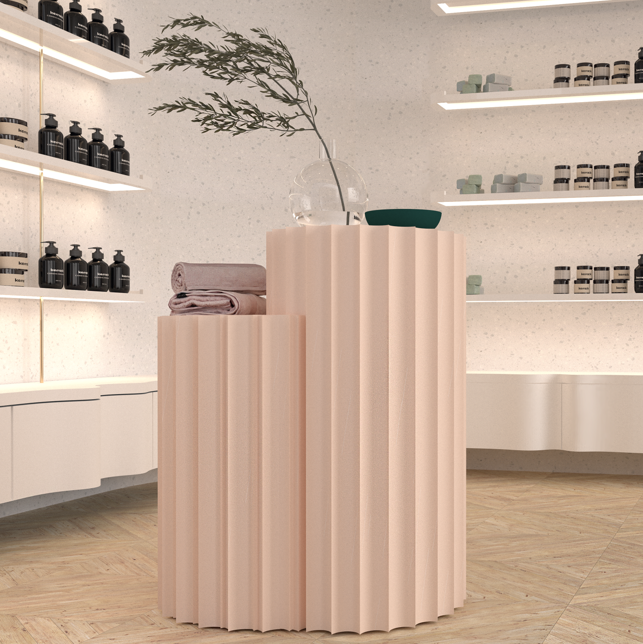 Retail: Use it for reception desks, decorative elements, vanity tops, wall cladding and sanitary walls and elements in bathrooms.